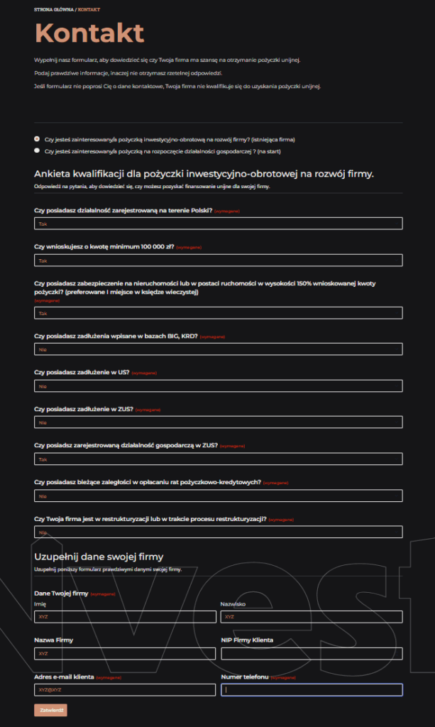 Rozbudowany kwestionariusz dla Klienta