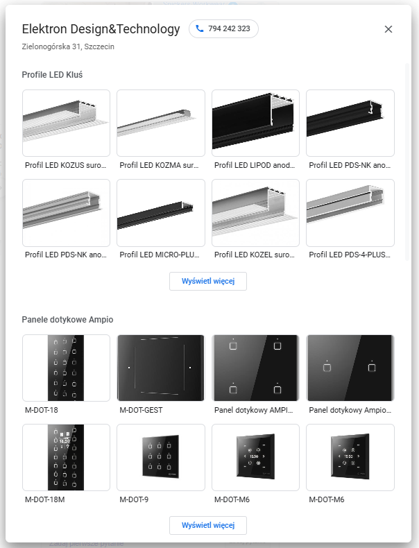 Dodanie produktów do wizytówki Google