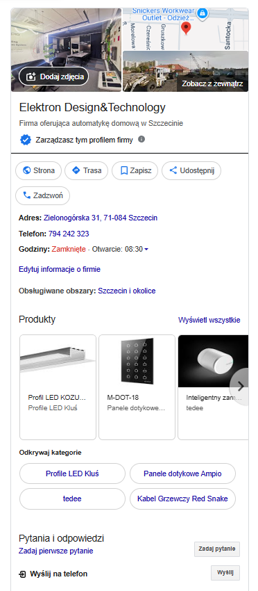 Rozbudowanie wizytówki Google